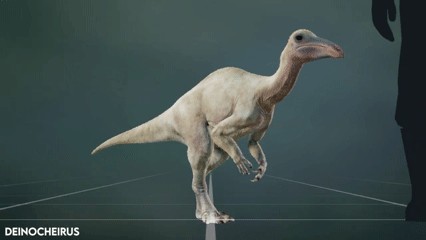 Prehistoric Planet: Only has one scene featuring the Deinocheirus. In it, the Single Deinocheirus is being onslaughted by blood-sucking flies before and attemps to satiate this itch by finding a suitable backscrather. I hope to see more of it in a potential season 3 intracting with a Therizinosaurus or Tarbosaurus
