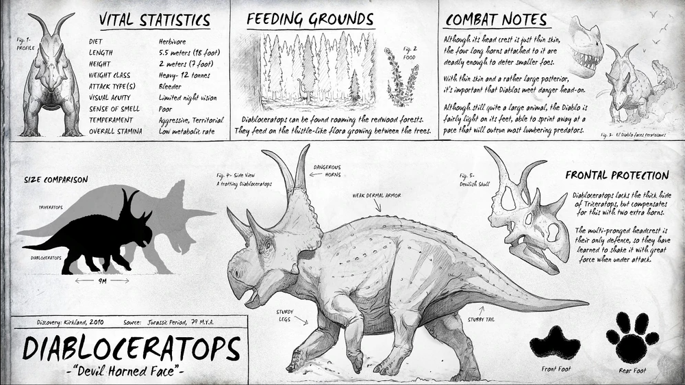 The Isle Diabloceratops is the main playable ceratopsian on the isle servers. Like the real animal it's quite capable of defending itself on it's own, however it is recomended to from a herd for safety against larger carnivores like Carnotaurus and Allosaurus