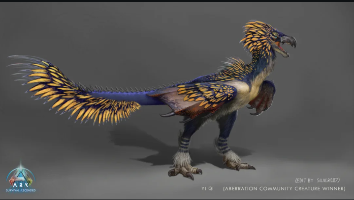 Yi qi has the shortest binomial name of any dinosaur at only 4 letters, the longest is Micropachycephalosaurus hongtuyanensis at 37 letters. It’s tail probably had 4 display feathers like it’s relatives